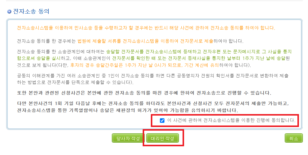 동의를 한 후 대리인 작성을 클릭해줍니다.