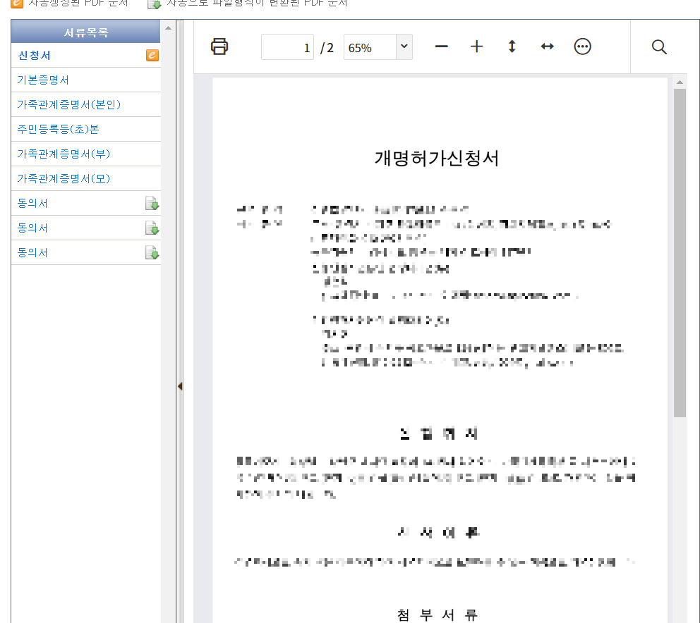 이 서류들은 나중에 첨부를 해야하기 때문에 PDF로 저장해 줍니다.