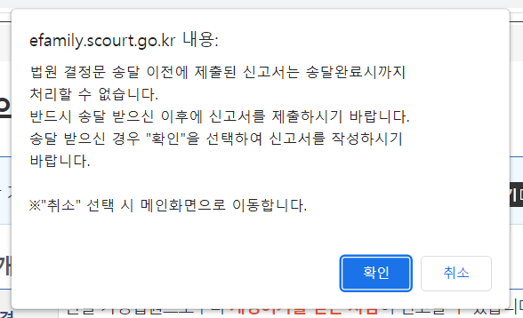 법원 결정문을 송달 받으셨습니까?에 예를 선택합니다.