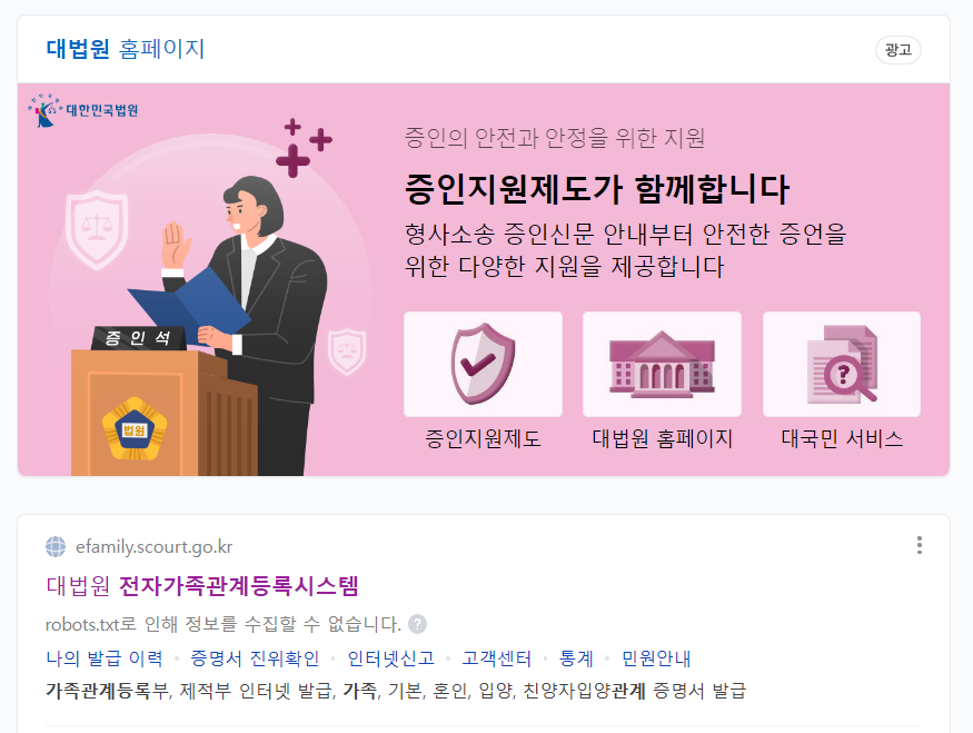 전자가족관계등록시스템을 검색 한 후 들어갑니다.