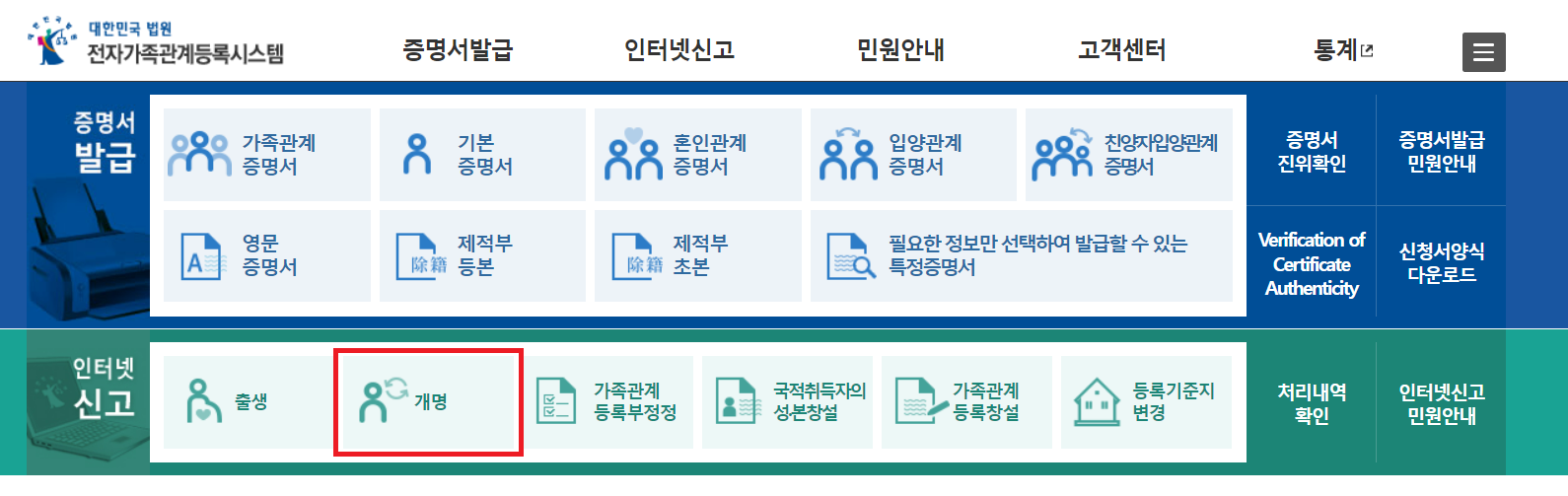 해당 결정등본을 확인한 후 이제 개명신청을 해야하는데요.